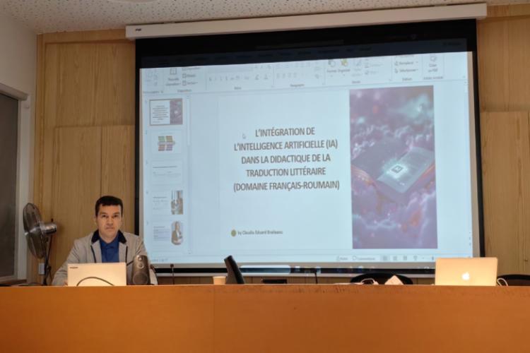 În perioada 14-15 februarie 2025 a avut loc la Paris, la Universitatea Sorbonne Nouvelle, colocviul internațional ”Nouvelles approches didactiques de la traduction et de l’interpretation”. La eveniment a participat și dr. Eduard Claudiu Brăileanu, reprezentând Universitatea Dunărea de Jos din Galați, care a susținut o prezentare cu tema: L’intégration de l’Intelligence Artificielle (IA) dans la didactique de la traduction littéraire (domaine français-roumain). Étude de cas: les romans de Valérie Perrin. Cercetarea a avut ca punct de plecare o întrebare neliniștitoare: care va fi viitorul traducerilor (implicit al traducătorilor) în contextul dezvoltării inteligenței artificiale? Cercetarea prezentată a oferit răspunsuri obiective printr-o analiză comparativă între diferite motoare de traducere automatizată și traducerile umane (profesioniste și non-profesioniste), plecând de la fragmente extrase din romanele unei autoare de succes în Franța, Valérie Perrin. În anul 2019, aceasta s-a numărat printre primii 10 autori, cei mai vânduți în Hexagon. Concluzia studiului este una optimistă: instrumentele de inteligență artificială pot ajuta, dar nu pot înlocui traducătorii umani.