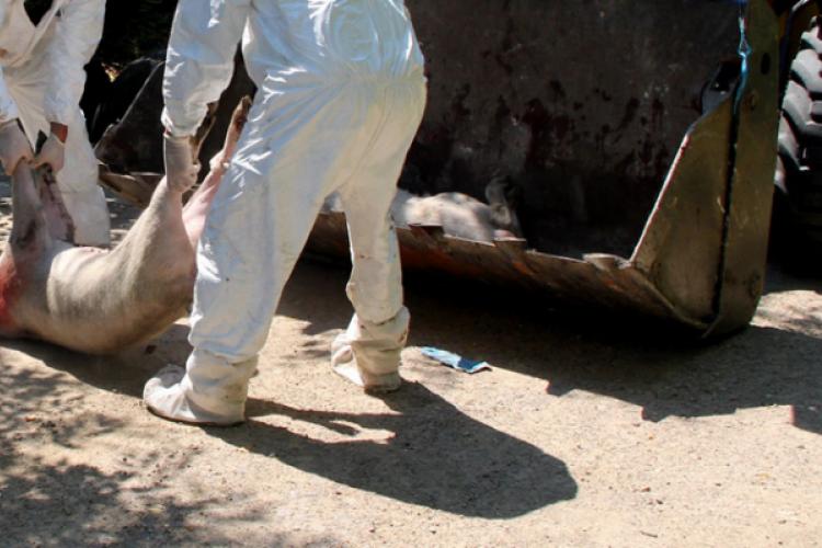 • operaţiunea de ucidere în masă a aproape 200.000 de porci implică o muncă uriaşă, suprasolicitantă atât fizic cât şi psihic pentru cei care o pun în practică • porcii sunt fie asomaţi unul câte unul, fie gazaţi în grup, cu dioxid de carbon • doar o mică parte din cadavre se incinerează, restul îngropându-se în tranşee lungi de până la 200 metri, late de 2 metri şi adânci de până la 8 metri