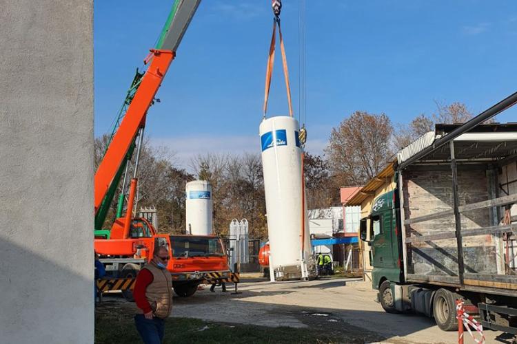 * este vorba despre un stocator de oxigen de 13.000 metri cubi, necesar pentru tratamentul bolnavilor Covid-19 * este al doilea stocator de oxigen pe care spitalul îl montează în mai puțin de o lună