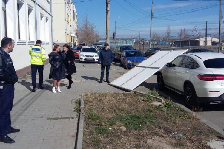 • panoul informativ de la blocul social de pe Strada Ancorei nr. 10, din apropierea sediului ADR, a căzut, marţi dimineaţă, pe maşina Mercedes-Benz GLC a USR-istului Nicuşor Ciocan, din cauza vântului • Ciocan lucrează la ADR şi a reclamat incidentul, acuzând că Primăria foloseşte materiale proaste pentru panourile informative • USR-istul s-a arătat nemulţumit şi de atitudinea directorului de la Strategii din cadrul Primăriei, Iuliana Neagu, care a venit la faţa locului pentru a constata incidentul şi l-a sfătuit că era mai bine să dea banii pe un apartament în loc de maşină • Neagu susţine că şi-a permis să îi sugereze asta lui Ciocan, în cadrul unei discuţii neoficiale • directorul a mai precizat că panoul este unul standard şi că era în stare bună în luna ianuarie