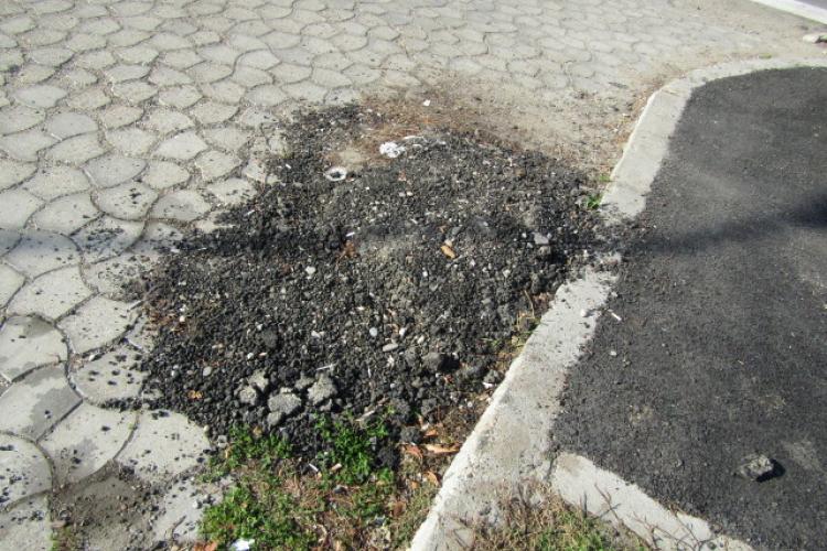 * vorbim despre grămezile de mixtură asfaltică, despre bordurile nepuse pe poziție și despre alte resturi abandonate cu lunile pe străzile unde s-au făcut asfaltări * nu e de trecut cu vederea nici noroiul care rămâne pe trotuare în urma celor care lucrează la Spații Verzi