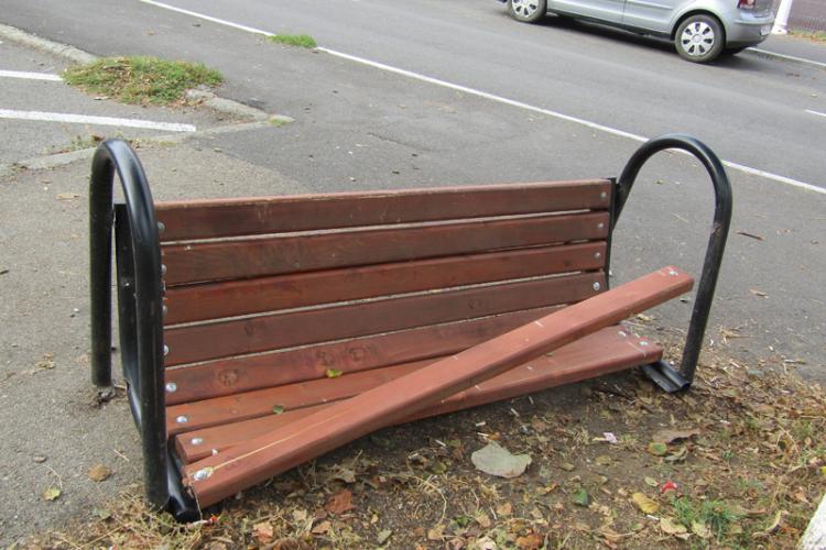 O gașcă de gălăgioși a vandalizat, ieri noapte, o bancă nouă montată lângă locul de joacă pentru copii, din zona Romarta Nouă. Violența și satisfacția bolnăvicioasă de a distruge au făcut ca spătarul și cotierele băncii să fie smulse în șase locuri de prindere cu sudură. Nu este prima dată când, în această zonă, derbedeii capătă curaj sub influența băuturilor consumate. Probabil și a drogurilor… De altfel, asemenea manifestări includ și urlete, înjurături, spartul semințelor, gunoaie și ambalaje de tot felul lăsate în urmă etc. Iar după cum ne-a declarat directorul Serviciului de Utilitate Publică, Administrare și Gospodărire Locală, Dumitru Munteanu, “se cheltuiesc sume foarte mari, în fiecare an, pentru reparatul nu doar a băncilor, dar și a coșurilor de gunoi, a echipamentelor de joacă pentru copii”.