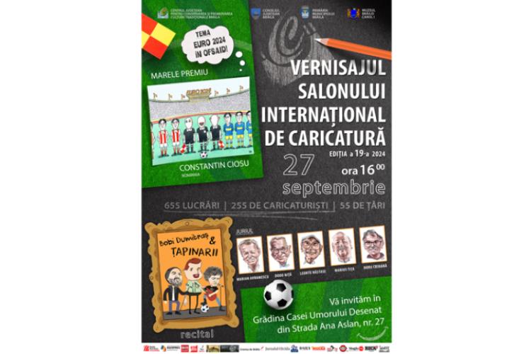 Centrul Județean pentru Conservarea și Promovarea Culturii Tradiționale (Centrul de Creație) Brăila, în colaborare cu Consiliul Județean, Primăria Municipiului Brăila și Muzeul Brăilei „Carol I”, organizează vineri, 27 septembrie, ora 16.00, în Grădina Casei Umorului Desenat, de pe Ana Aslan nr. 27, vernisajul celei de a XIX-a ediții a Salonului Internațional de Caricatură de la Brăila.