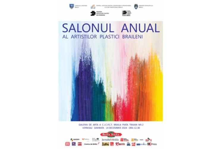 Iubitorii de artă și de frumos sunt invitați sâmbătă, 14 decembrie, începând cu ora 12:30, la vernisajul Salonului Anual al Artiștilor Plastici Brăileni, organizat de Uniunea Artiștilor Plastici din România (UAPR) – Filiala Brăila, în parteneriat cu Centrul Județean pentru Conservarea și Promovarea Culturii Tradiționale (Centrul de Creație) Brăila, la Galeria de Artă a CJCPCT, din Piața Traian nr. 2.