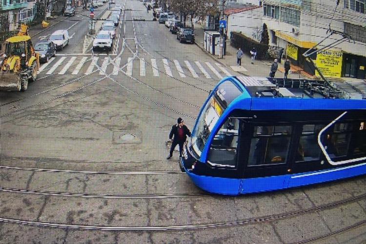 VIDEO Cum au intervenit jandarmii în cazul unui tramvai cu călători care a pornit de pe loc, cu ușile blocate. Vatmanul coborâse să schimbe macazul.