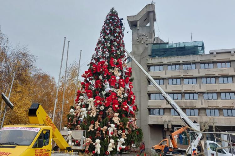 Vin sărbătorile! A fost instalat Pomul de Crăciun în Piața Independenței