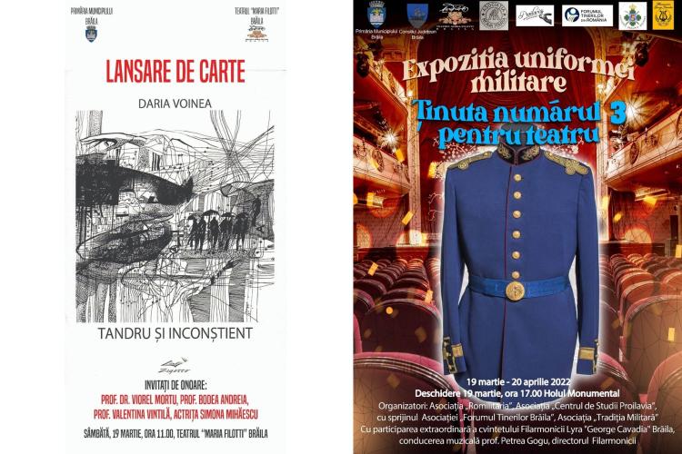 * sâmbătă, 19 martie, de la ora 11.00, are loc lansarea cărții ”Tandru și inconștient” a tinerei autoare Daria Voinea * sâmbătă și duminică brăilenii pot admira expoziția de uniforme militare din perioada interbelică ”Ținuta numărul 3 pentru teatru”