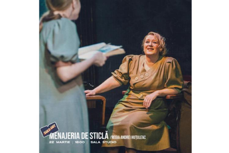 – ”Menajeria de sticlă” de Tennessee Williams, regia Andrei Huțuleac, care se joacă vineri, 22 martie, la Sala Mare. Distribuție: Monica Ivașcu, Ciprian Chiricheș, Blanca Doba și Sever Andrei Bârzan.