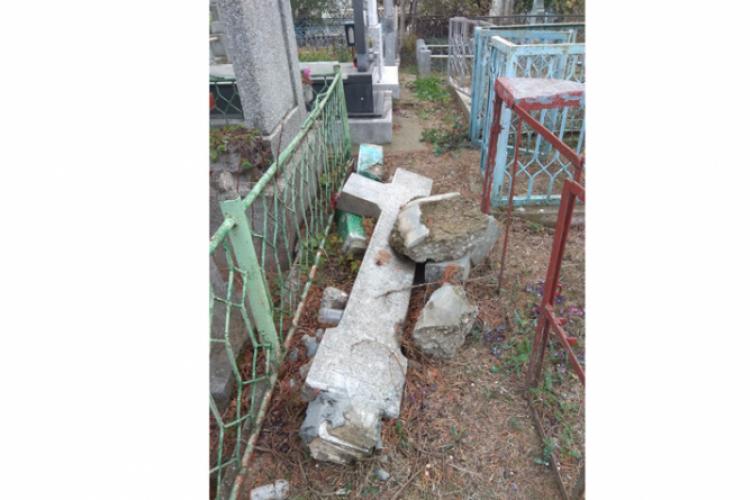 • peste 30 de cruci de beton şi de marmură au fost distruse în noaptea de vineri spre sâmbătă de trei tineri teribilişti, posibil minori din cartierul Radu Negru • reprezentanţii SUPAFLC au sesizat, deja, Poliţia, iar ancheta este în plină desfăşurare • autorii distrugerilor au fost surprinşi de camerele de supraveghere din zonă şi urmează a fi identificaţi şi traşi la răspundere