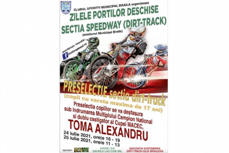 Clubul Sportiv Municipal Brăila organizează Zilele Porților Deschise, la secția dirt-track (speedway), eveniment sportiv care va avea loc pe 24 și 25 iulie, care are un caracter de selecție. Cu acest prilej sunt așteptați la Stadionul Municipal tineri cu vârsta până în 17 ani care doresc să se inițieze în tainele acestei discipline sportive cu mare tradiție în Brăila. Coordonator al acestor selecții este multiplul campion național, Alexandru Toma, cel care are în palmares și două titluri MACEC.