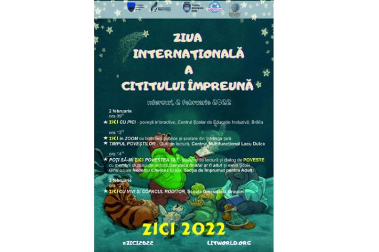 Biblioteca Județeană ”Panait Istrati” Brăila organizează miercuri, 2 februarie, Ziua Internațională a Cititului Împreună (ZICI) 2022. ZICI este un eveniment global marcat de milioane de oameni în peste 100 de țări. În România se vor organiza sesiuni de lectură împreună cu mii de copii și sute de educatori, învățători, profesori, bibliotecari, librari și pasionați de lectură.