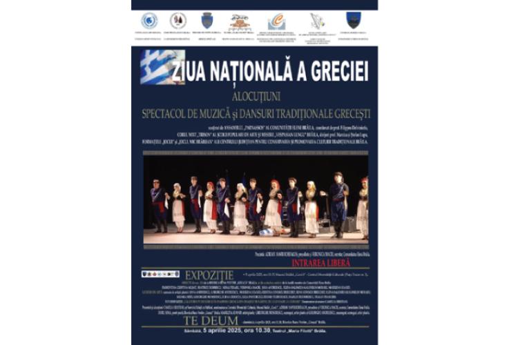 Comunitatea Elenă Brăila, în colaborare cu Muzeul Brăilei „Carol I”, Consiliul Județean Brăila, Primăria Municipiului Brăila, Uniunea Elenă din România, Teatrul „Maria Filotti”, Parohia Buna Vestire (Greacă), Centrul de Creație Brăila, Școala Populară de Arte „Vespasian Lungu” și UAPR – Filiala Brăila îi invită pe brăileni – români și reprezentanți ai etniilor, deopotrivă – la festivitățile prilejuite de Ziua Națională a Greciei (25 martie).