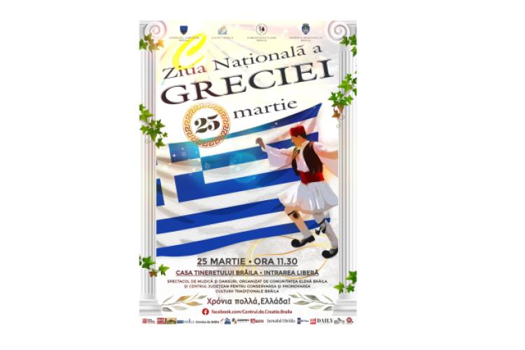 Ziua Națională a Greciei, marcată în orașul de la Dunăre. Consiliul Județean Brăila, Primăria Municipiului, Centrul Județean pentru Conservarea și Promovarea Culturii Tradiționale (Centrul de Creație) și Comunitatea Elenă din Brăila organizează, sâmbătă, 25 martie (sărbătoarea creștină a Bunei Vestiri), începând cu ora 11.30, în Sala de spectacole a Casei Tineretului de pe Calea Călărașilor, un eveniment cultural artistic dedicat Zilei Naționale a Greciei, având ca obiectiv – precizează organizatorii – păstrarea, dezvoltarea și afirmarea identității culturale elene (limbă, tradiții,obiceiuri, istorie și patrimoniu).