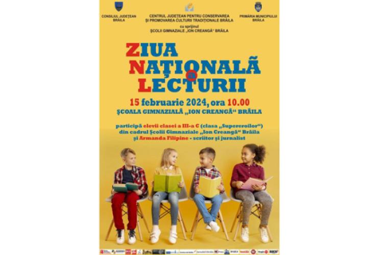 Consiliul Județean Brăila – prin Centrul Județean pentru Conservarea și Promovarea Culturii Tradiționale (Centrul de Creație) – și Primăria Municipiului Brăila celebrează joi, 15 februarie 2023, Ziua Naţională a Lecturii, prin două evenimente culturale incluzând „activități de promovare a importanței lecturii și a rutinei de citit”, pentru a face față cu succes provocărilor societății actuale.